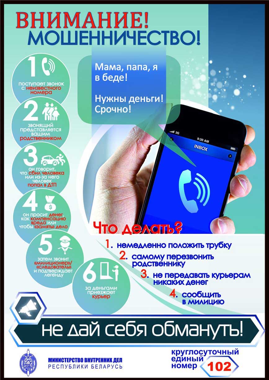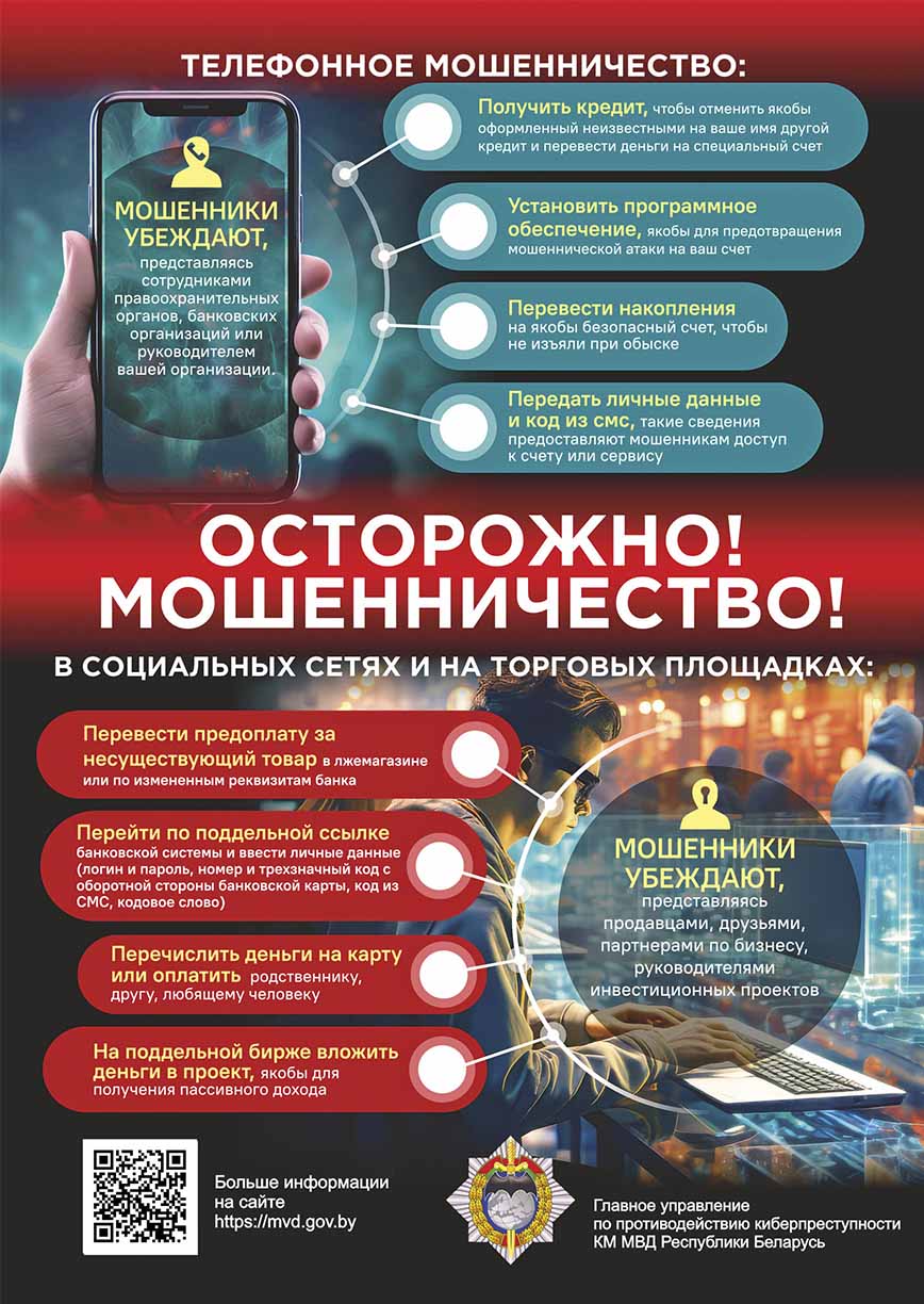 Галоўнае ўпраўленне па супрацьдзеянні кіберзлачыннасці крымінальнай міліцыі Міністэрства ўнутраных спраў Рэспублікі Беларусь ("Упраўленне К") папярэджвае аб частых выпадках кіберзлачынстваў.