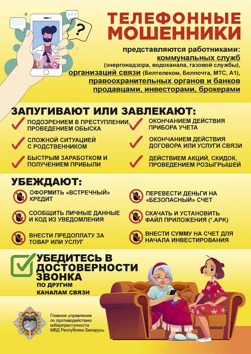 Главное управление по противодействию киберпреступности криминальной милиции Министерства внутренних дел Республики Беларусь (”Управление К“) предупреждает об участившихся случаях киберпреступлений.